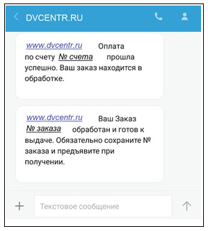 - После создания заказа - Ваш заказ по счету №счета обработан и готов к выдаче. Обязательно сохраните № заказа и предъявите при получении.